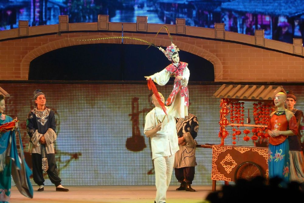 表演节目:川剧传统剧目《皮筋滚灯》、《打拼》、民间绝技杖头木偶《人间好》表演
