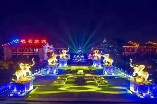 建成于2009年的峨眉象城大剧院,位于峨眉山市象城内,象城是进出峨眉山大佛禅院的通道。峨眉象城占地面积67亩,规划建筑面积26250平方米,是仿古与古典园林相结合的建筑风格、非遗民俗文化、四川小吃等特色使峨眉象城成为峨眉山一道独特的风景线。象城大剧院总建设面积10387.2平方米,总投资约2亿。建筑形态为地上三层、地下两层,建筑呈现明清园林群落风格,建筑体着重突出“利众、圆融、欢喜、光明”的功能,观众厅是传统的马蹄形,从不同角度都能看到极优的舞台效果。屋面最高约30米,东西长约180米,南北宽100米,剧场内设置座位约1000个,排练厅座位约200个,是一家有着较强综合实力的多功能剧院。《圣象峨眉》演出场地位于峨眉山市大佛禅院景区象城大剧院内,该剧目由乐山汉嘉旅游发展有限责任公司、四川省大木偶剧院以及四川师范大学舞蹈学院联袂打造,该项目投资8000多万,剧院面积3000多平方米,是峨眉山市最豪华的演出场地。