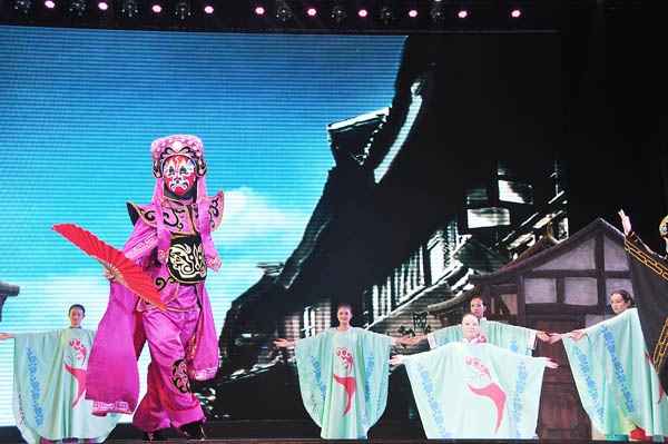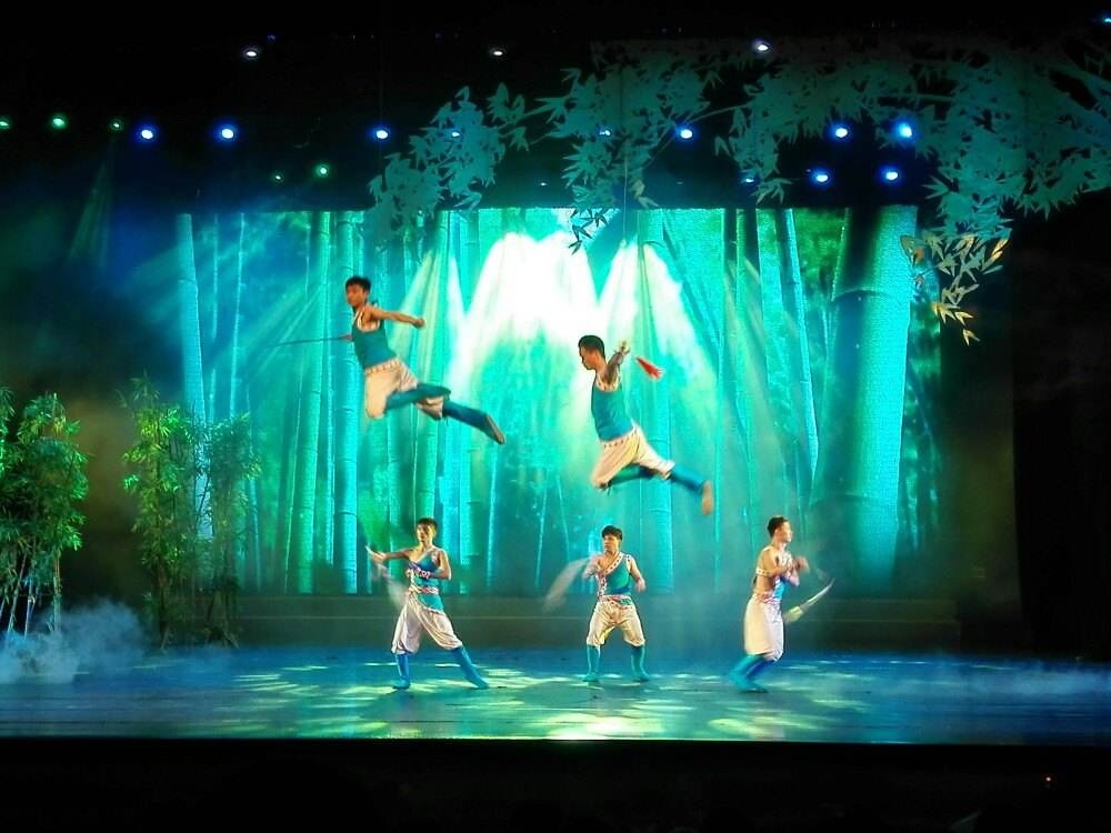 演出内容:主要表演内容:川剧绝活变脸、吐火、顶灯,峨眉武术、手影戏,大木偶写字、大木偶长绸舞、大木偶变脸、杂技、柔术、长嘴壶茶艺表演、空中绸吊、特色舞蹈