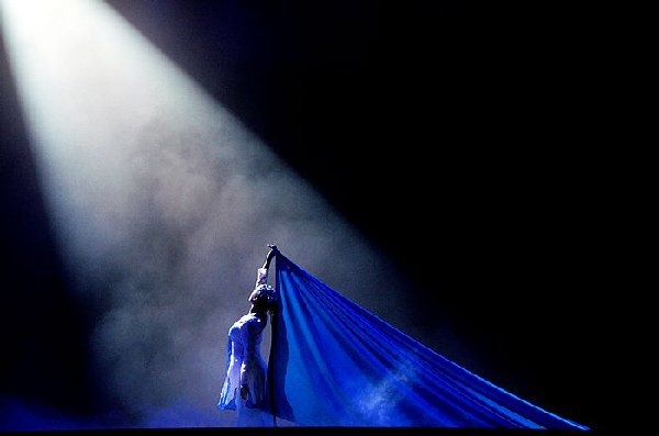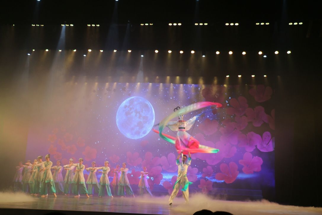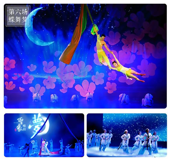 拥抱前、离别后,生命在这一秒化成灰烬,我愿化身为蝶,只为在梦里与你翩然起舞,哪怕天旋地转,只愿与你缠绵一梦,在这座琴声悠扬充满禅味的仙山里,一同飞向遥远的天际…… 中国大木偶是国家非物质文化遗产,世界稀有剧种,《长绸舞》是川北大木偶的代表剧目之一,它舞动的8米长绸是我国戏曲类节目中最长的长绸,该节目曾随团出访过俄罗斯、芬兰、印度、荷兰、新加坡、墨西哥等20多个国家和地区,并在2003年韩国春川国际艺术节上荣获表演金奖。此景只应天上有,人间能得几回真?大木偶长绸舞和杂技,舞蹈的完美结合。那一轮山月,象是在呼唤海内外的游客,来吧,《圣象峨眉》剧组将带给你全新的艺术感受。踏月而来的女子,她们在追逐梦境的美丽。