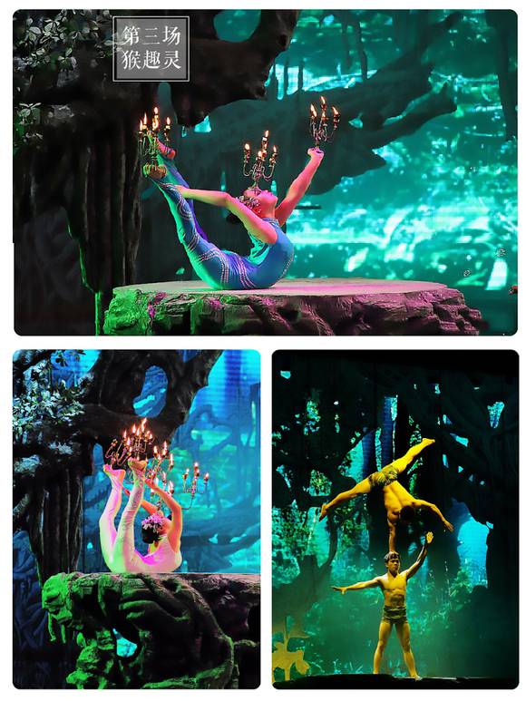 苍松翠木的森林中,藤蔓缠绕,满目绿意盎然,在树林间,有花盛开,溪水清脆,莹光点点,精灵闪耀,林风送来花香,晨曦散去,森林中的精灵们苏醒了藤蔓间,一群小猴在嬉戏着,无忧无虑地享受着这人间天堂。盘根错节的山石老树,在这灵气中孕育、生长,彰显着生命力量。源于生命的悸动,山林中总有精灵们欢乐的舞蹈,峨眉山的灵猴,佛性?人性?山与树缠绕,莹与岚交织,这座神奇的仙山啊,给予我们太多的美丽......“灵山圣灯”是峨眉山的一道独特的风景,杂技小姑娘精彩的表演,营造了一个梦幻般的世界。